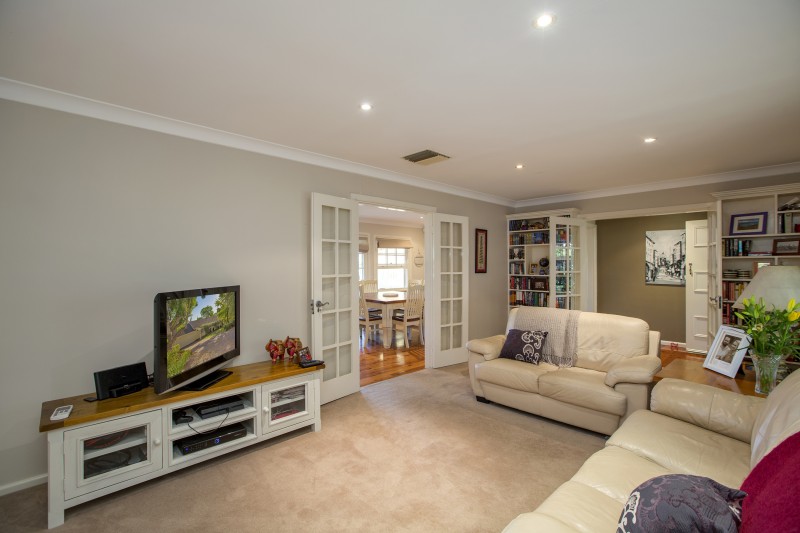 - Formal lounge with matching built-in bookcases and glass french doors