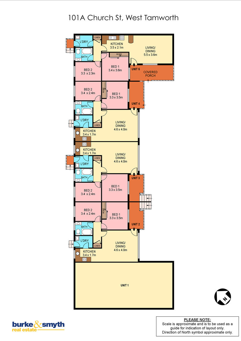 Conveniently positioned in Central West Tamworth this solid investment is only a short walk to Southgate Shopping centre, the Shopping World centre, CBD and multiple schools. It offers 1 x 3 bedroom unity and 4 x 2 bedroom units all on the one Torrens Title limiting the outgoings while maintaining full control over the unit complex. This unit block has been a great investment with a strong history of nearly no vacancy and long term tenants. There is still scope to update the units and obtain a higher rental yield or just simply hold as they are and sit on a hassle free investment. Inspections are by appointment only and notice is encouraged to provide good access.