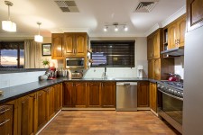 Downstairs: Large slate tiled games/family room with kitchenette, bar and gas point plus an adjoining undercover paved entertaining area that is well shaded in the afternoons. There is also a bedroom with its own ensuite. This area has the unique lifestyle advantage of nearly being self-contained making it ideal for the home business, family day-care, teenage retreat or guest accommodation for a side income.