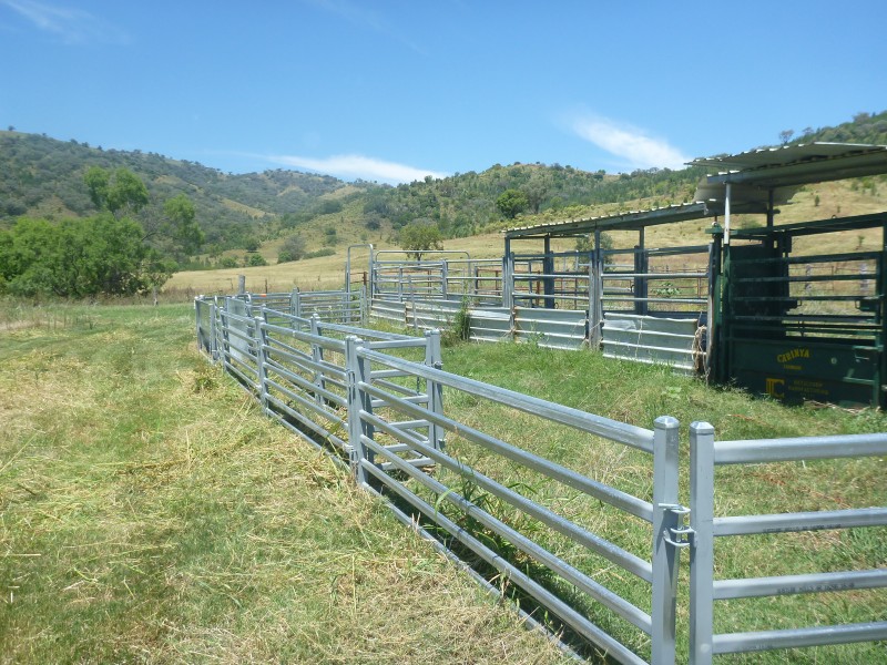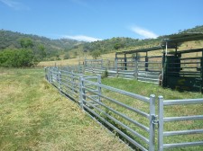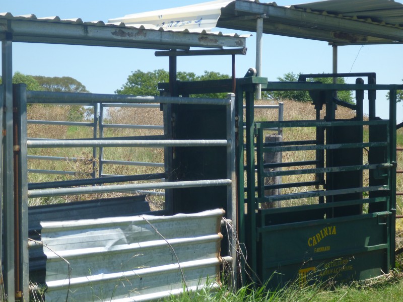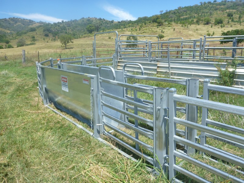 Steel cattle yards with crush and loading race.